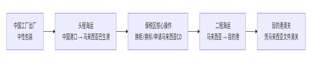 头程运输(半成品或成品):中国出口商将螺栓(可为成品或半成品螺栓坯)以正常贸易方式出口至马来西亚巴生港保税区。